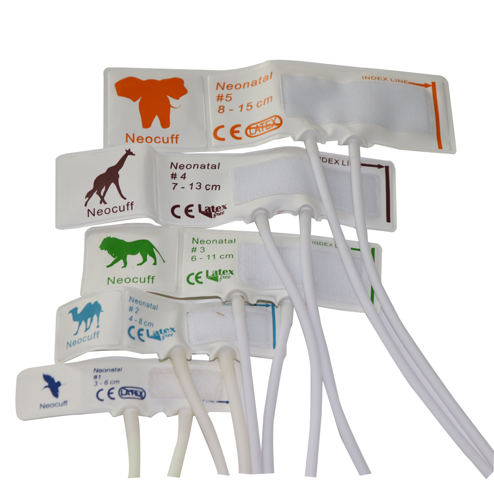 Yenidoğan için tek kullanımlık kan basıncı manşet, nibp manşet TPU Malzeme Çift tüp size1-5, 5 adet / çanta. Konnektörler olmadan