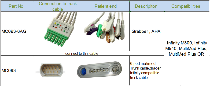 Draeger Infinity M300 EKG Leadwire ile uyumlu - MS16547 6-POD EKG leadwire seti
