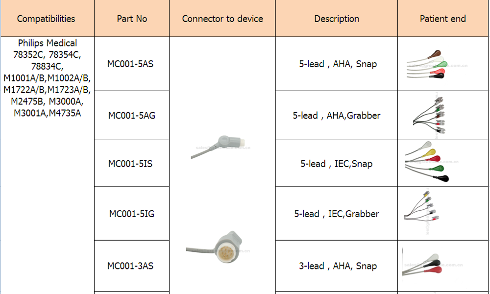 Philips Tıbbi 78352C, 78354C, 78834C, M1001A / B, M1002A / B, M1722A / B, M1723A / B, M2475B, M3000A, M3001A, M4735A