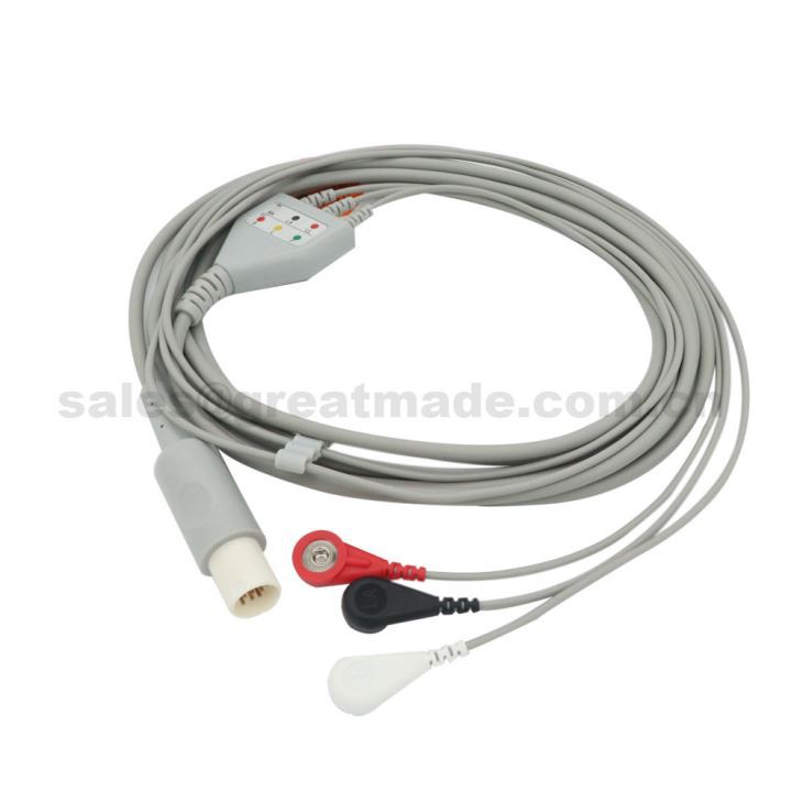 Hellige SCP 844, SCP 851, SCP 852, SCS 804 ile Hasta Monitörü, AHA, Snap ile Uyumlu 3-Lead Kurşun Telli Tek Parça EKG Kablosu