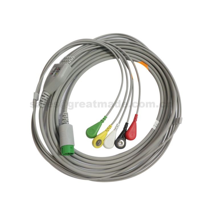 Mindray Beneview T5 ile uyumlu tek parçalı 5 Uçlu Kalkan EKG Kablosu. T6. T8, PM5000, PM 6000, Snap, IEC, 12ft, Yuvarlak 12PIN