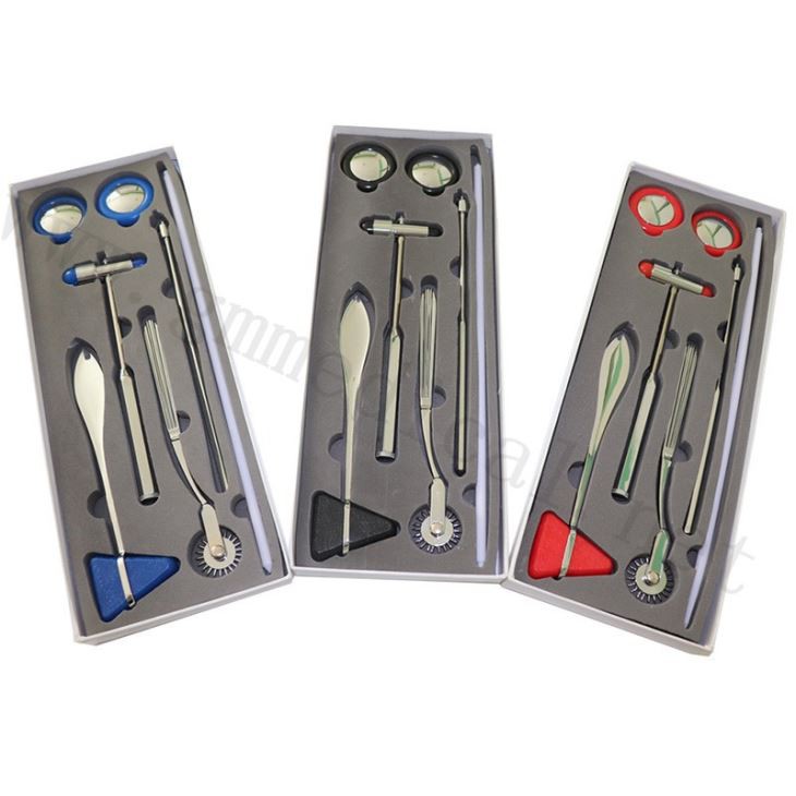Çok Fonksiyonlu Vurmalı Teşhis Refleks Darbeli Çekiç Seti Tıbbi Nörolojik Masaj Çekiç Seti Sağlık Bakımı Refleks çekiç seti 5 farklı refleks çekiç içerir: Üçgen Çekiç, Uzun Metal Çubuk Çekiç, Uzun Plastik Çubuk Çekiç, T-şekilli Çekiç, Geer Tekerlek Çekiç.